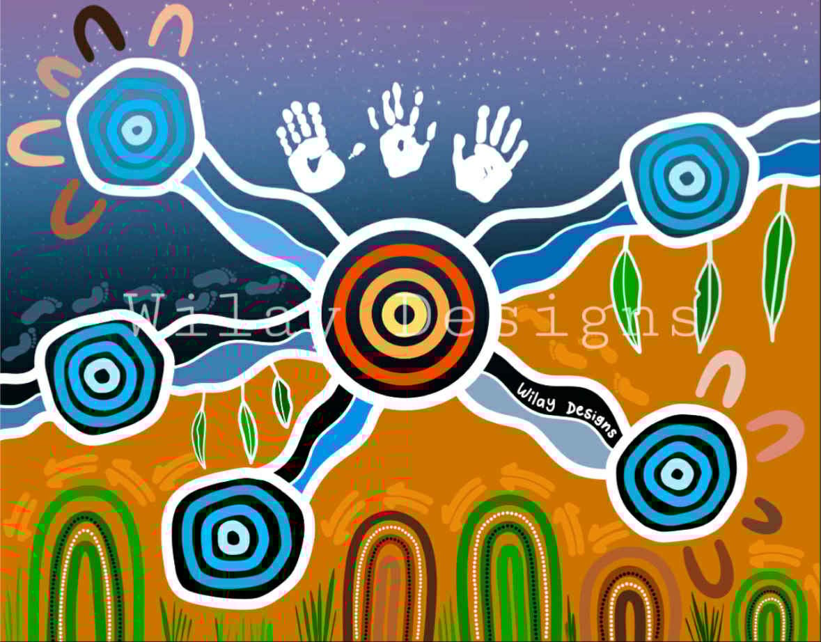 This work is a celebration of story, survival, and the shared footprints we leave through Country - past, present, and future.